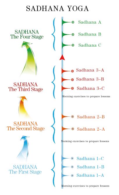 If a practitioner wants to go further, the final stage of Sadhana Yoga is the spiritual practice. There are three levels. Each of them has sub-levels, as shown below.